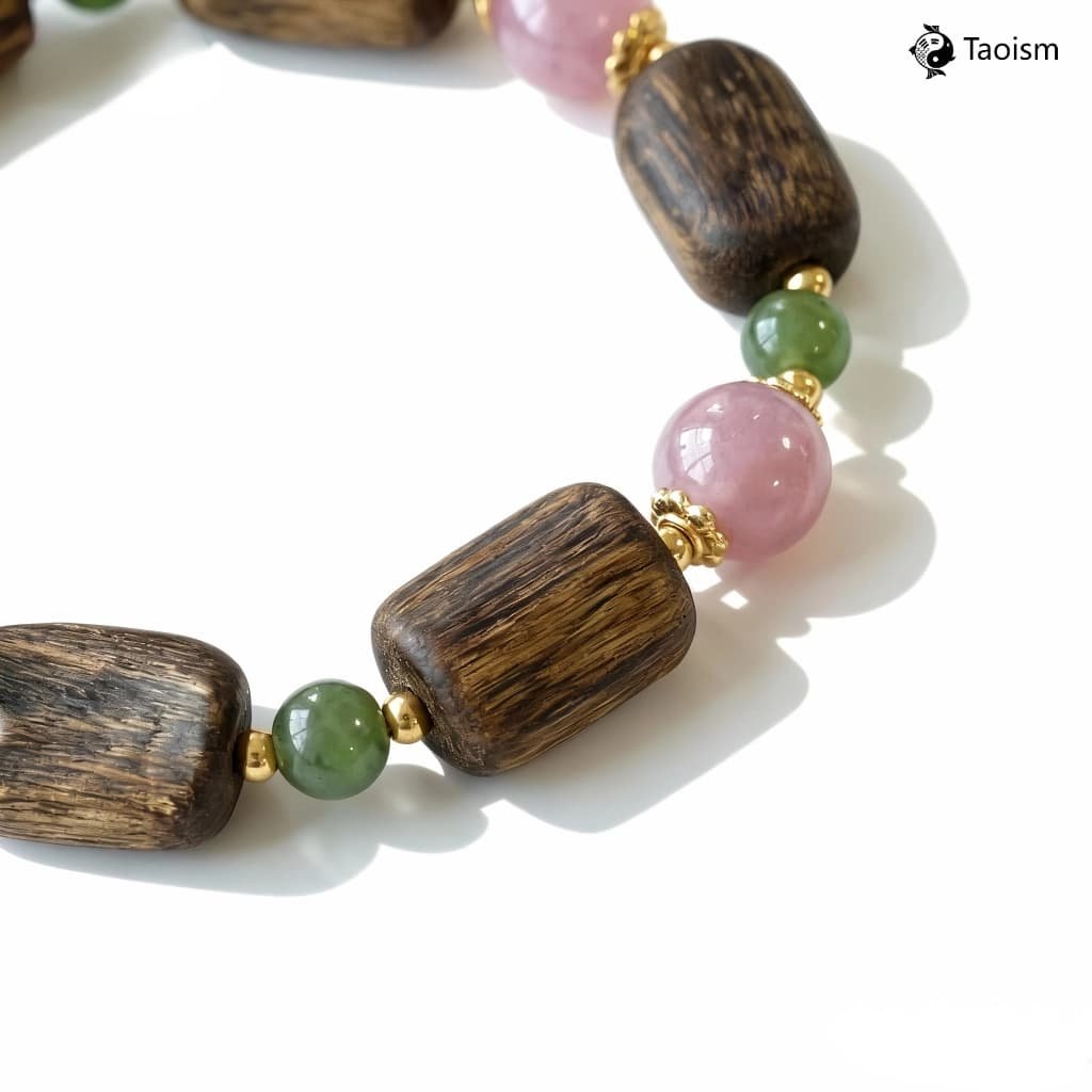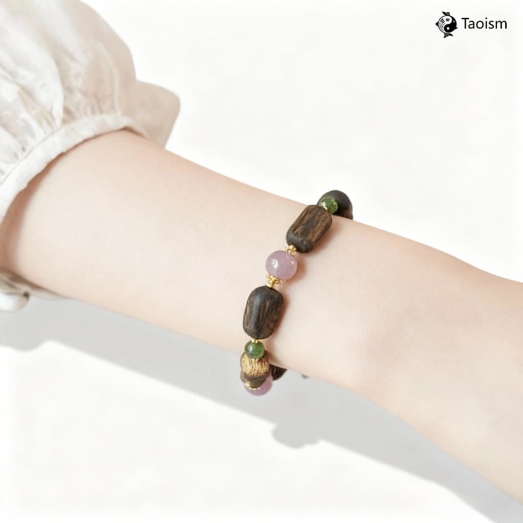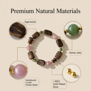 This exquisite energy bracelet is crafted from rare Agarwood (Qi Nan grade), natural Hetian Jade, harmonizing Purple Sandalwood powder, and accented with S925 silver gold-plated details. More than jewelry, it is a tool for focused sleep, mindfulness, and personal energy balance, helping you stay centered through day and night.