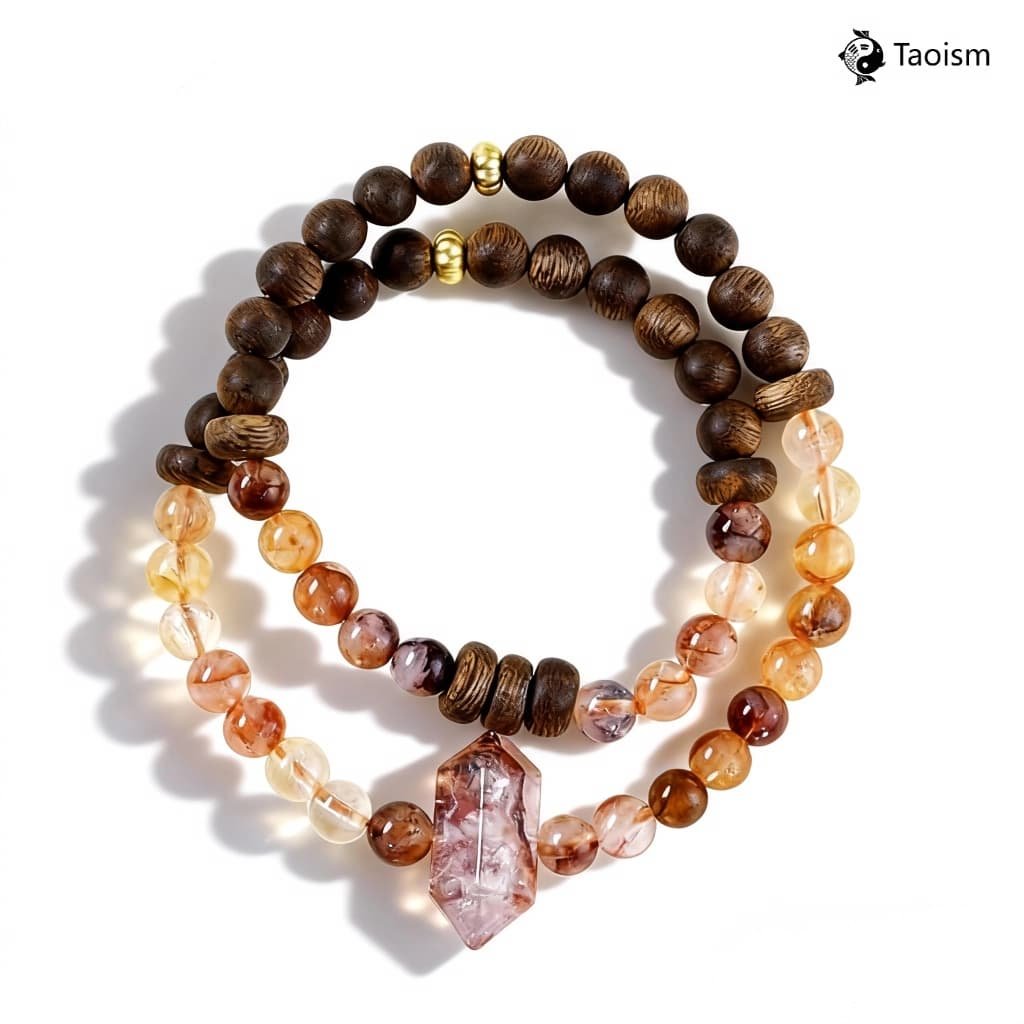 A combination of Fire (red phantom quartz) and Wood (agarwood), creating a sustained Wood-to-Fire generative and nourishing synergy.