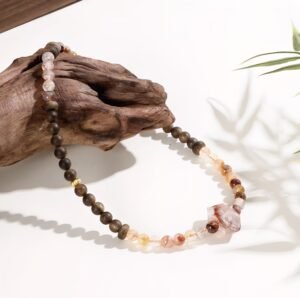 • Primary Beads: Natural Agarwood beads and vibrant Red Phantom Quartz beads.