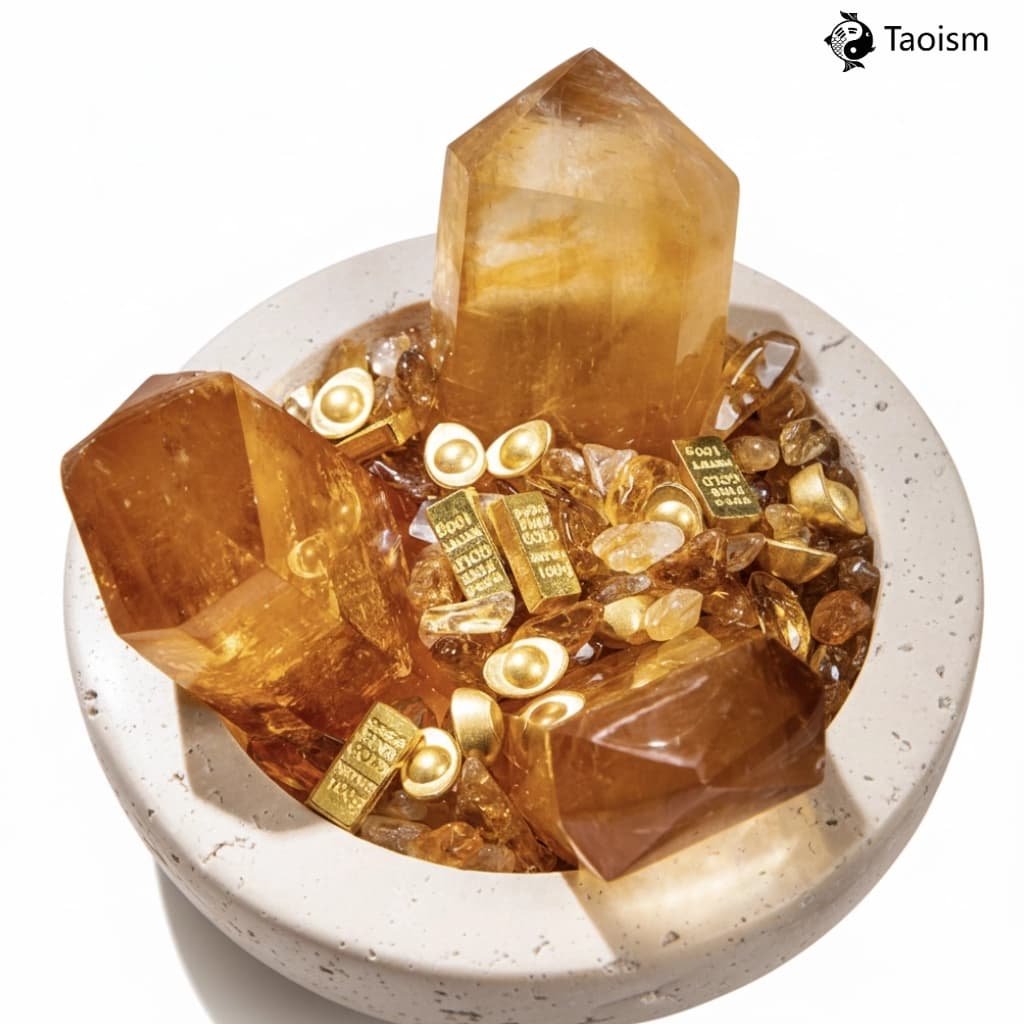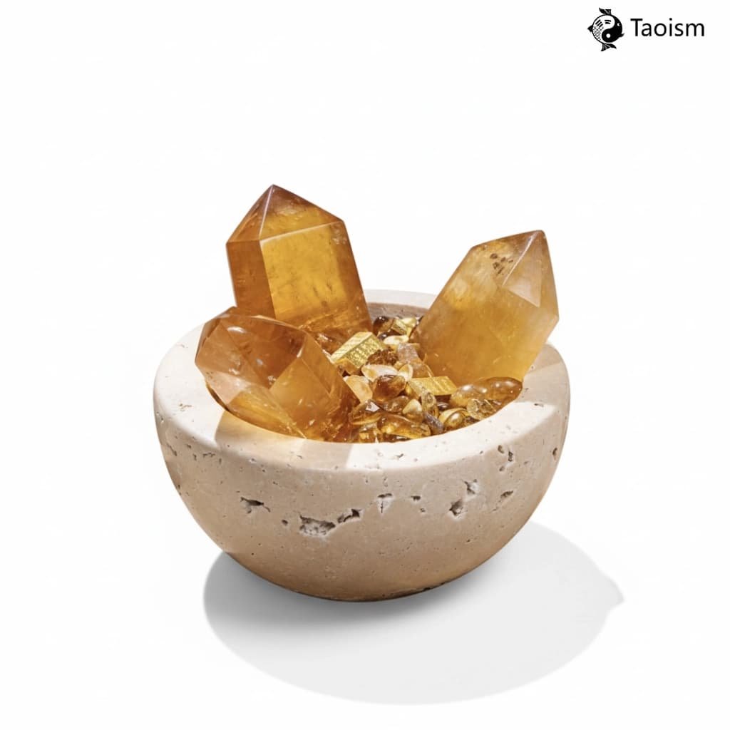 Citrine "Golden Wealth" Treasure Basin Set – A Feng Shui Arrangement for ProsperityCitrine “Golden Wealth” Treasure Basin Set – A Feng Shui Arrangement for Prosperity