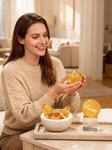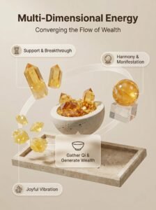 • Citrine Sphere (Harmony & Manifestation): Symbolizes “Wishes Fulfilled” and perfection. Its spherical energy field is gentle yet powerful, harmonizing and amplifying the entire formation’s aura, promoting the smooth realization of intentions, particularly beneficial for unexpected wealth and wealth through connections.