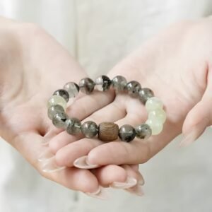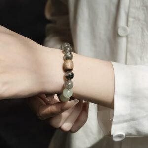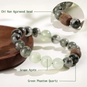 This powerful bracelet harmonizes Wood & Earth elements to attract career-driven wealth (Green Phantom Quartz), purify emotional stress (Grape Agate), and provide deep grounding & mental clarity (Kyara Agarwood). Ideal for manifesting abundance while finding inner peace.