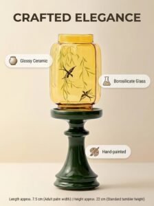 It inherits the elegance of Ming-Qing artifacts, featuring the motif “Willow & Swallows in Spring” — with graceful willow tendrils and dancing swallows symbolizing vitality and the joy of nature. Each piece is handmade by artisans. The ceramic glaze possesses a jade-like warmth, while the glass is crystal clear. The slight unique variations are the very imprint of handmade warmth.