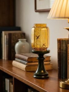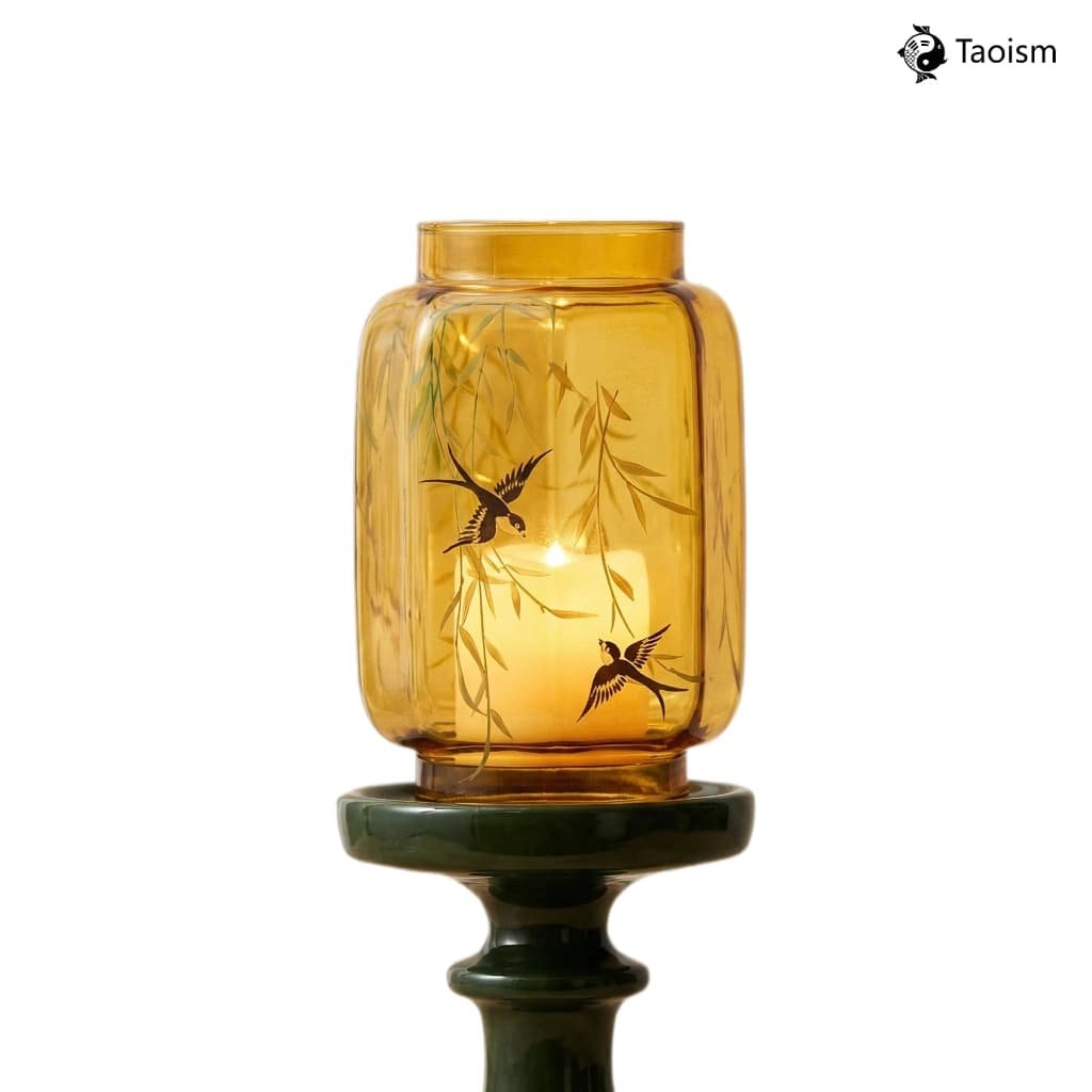 This handmade candle holder, blending glass and ceramic, draws inspiration from “Willow & Swallows in Spring” with Ming-Qing dynasty elegance. The warm ceramic base paired with a crystal-clear borosilicate glass shade creates a serene Zen atmosphere with flickering candlelight. It’s a healing piece perfect for adorning tea spaces, studies, or meditation areas.