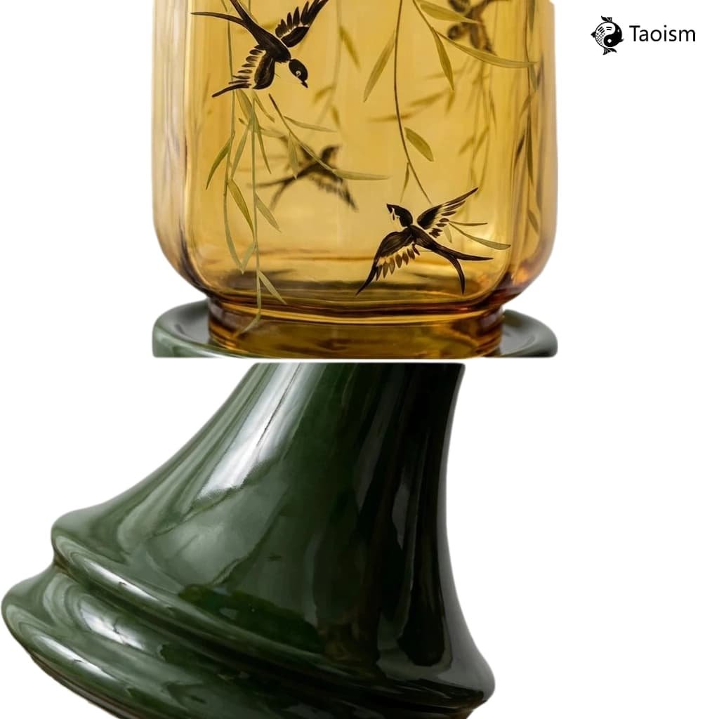 It inherits the elegance of Ming-Qing artifacts, featuring the motif “Willow & Swallows in Spring” — with graceful willow tendrils and dancing swallows symbolizing vitality and the joy of nature. Each piece is handmade by artisans. The ceramic glaze possesses a jade-like warmth, while the glass is crystal clear. The slight unique variations are the very imprint of handmade warmth.