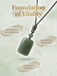 This Natural Hetian Jade “Peace and Well-Being” pendant is made from premium jade, featuring a plain, unadorned surface that symbolizes the purity of energy and a life of peace and tranquility. Rooted in Taoist tradition, it serves as an energy talisman designed to attract health, safety, and overall well-being to the wearer. Carry its gentle, nurturing energy with you throughout the day.