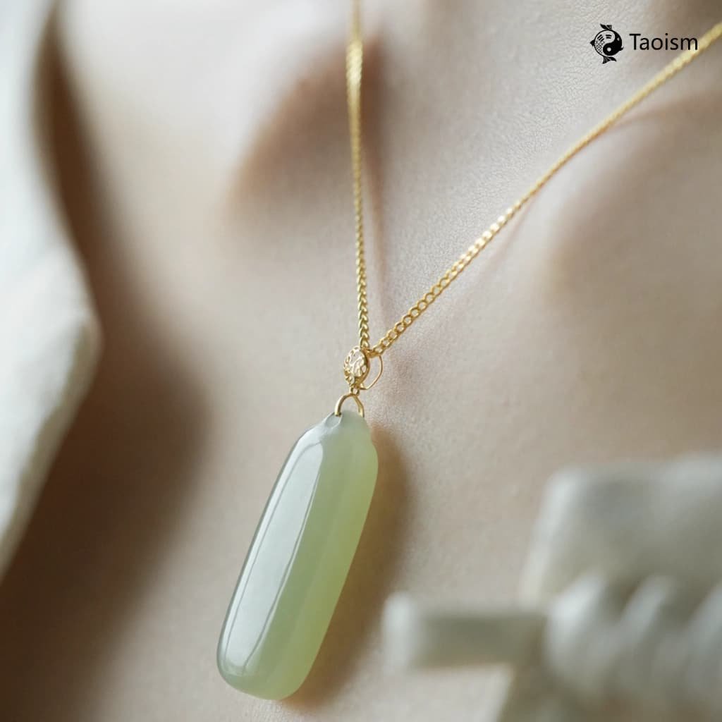 A harmonious union of Earth (Hetian jade) and Water (clear-water hue), with the plain “Wu Shi” plaque condensing pure energy to create a stabilizing field of protection rooted in Earth and softened by Water.