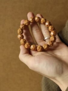 • The Foundation Phase (First 1-2 Weeks): Upon arrival, begin by wearing cotton gloves while rolling the beads for about 15-20 minutes daily. This initial “foundation setting” period helps establish a smooth, glossy base (known as “hanging porcelain”) without exposing the raw nuts to excess skin oils or moisture, which can lead to a dark uneven patina.