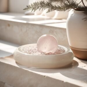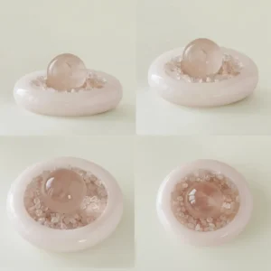 The Heart as a Vessel, Holding the Universe’s Gentlest Echo. The pink quartz sphere is unspoken love, the jade bowl a vow of silent acceptance. Together, they light a perpetual ‘Lighthouse of the Heart’ within your home—its soft frequency a beacon to call and guard the love that resonates with your own.