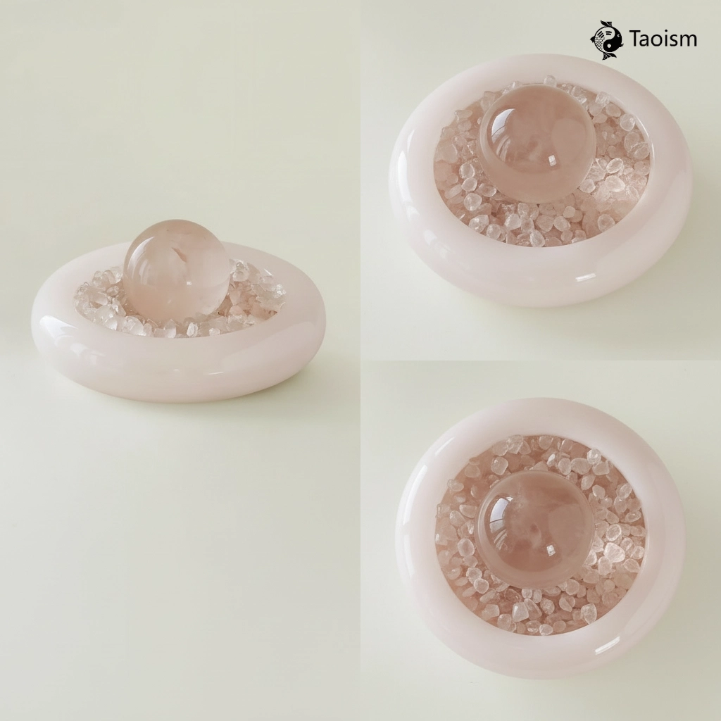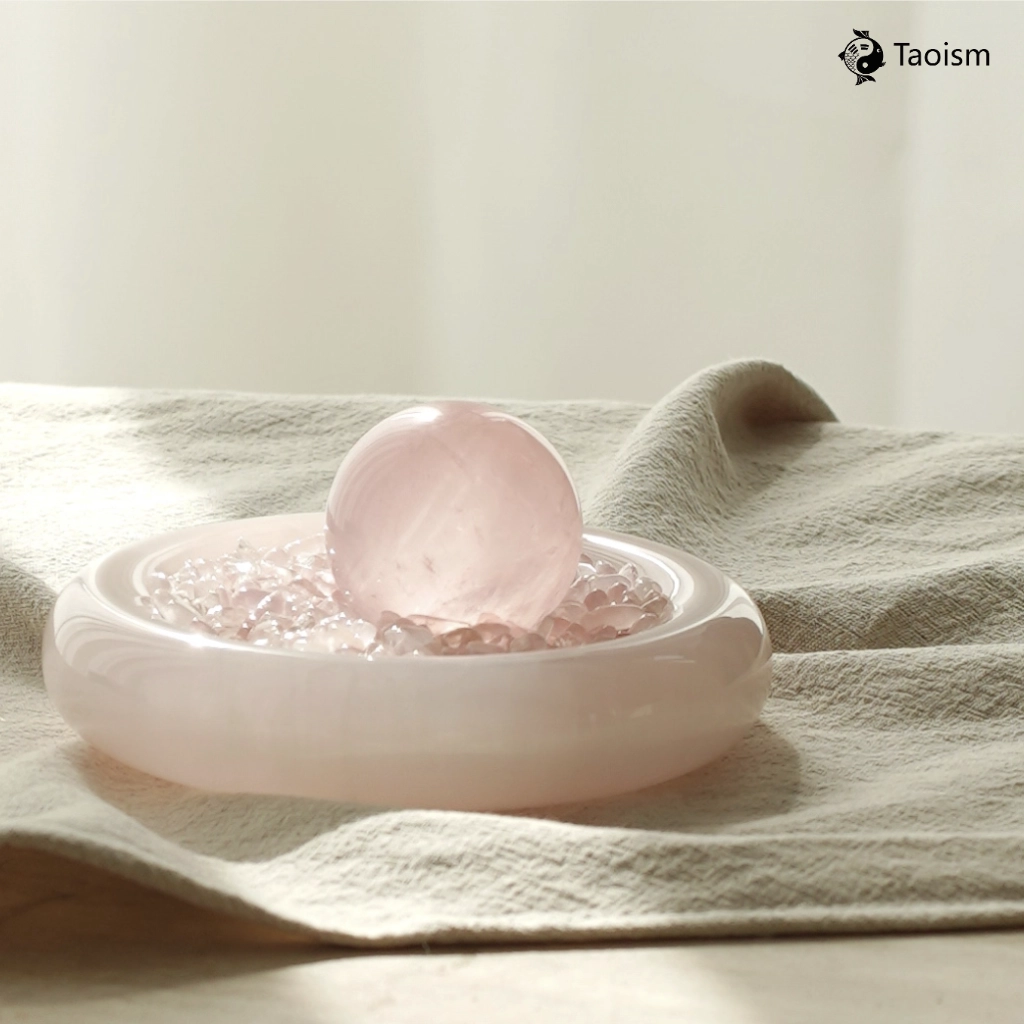 The Heart as a Vessel, Holding the Universe’s Gentlest Echo. The pink quartz sphere is unspoken love, the jade bowl a vow of silent acceptance. Together, they light a perpetual ‘Lighthouse of the Heart’ within your home—its soft frequency a beacon to call and guard the love that resonates with your own.