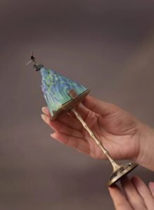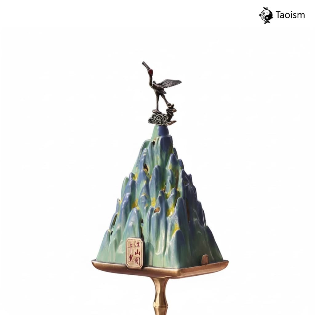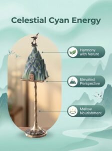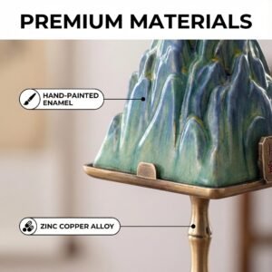 This “Celestial Cyan Mountain & Crane” incense burner transforms the sublime aesthetics of classical Chinese landscape painting into a functional object of meditation. Meticulously crafted using ancient lost-wax casting and hand-enameled techniques, it embodies the serene “Mellow & Subtle” energy. Perfect for use with cone or Tibetan incense, it creates a moment of peaceful ritual, harmonizing your space with nature’s tranquil beauty.