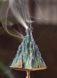 Where Incense Colors the Landscape into Poetry. A living scroll of Celestial Cyan, where fragrance meets art, smoke paints mountains, and a vessel captures the soul of a timeless painting—inviting you to gaze upon peaks, listen to the mist, and nurture your inner essence.